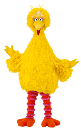 Der weltberühmte Vogel war eine zentrale Figur in Sesamstraße für den Programmlauf und debütierte in der ersten Episode. Der große gelbe Vogel kann Rollschuh, Schlittschuh laufen, tanzen, singen, Gedichte schreiben, zeichnen und sogar ein Einrad fahren - ziemlich talentiert für eine Figur, die in der Fernsehsendung als 6-jähriger beschrieben wird. Trotz dieser Vielfalt an Talenten neigt er zu häufigen Missverständnissen, zum Beispiel, dass das Alphabet ein langes Wort ist.